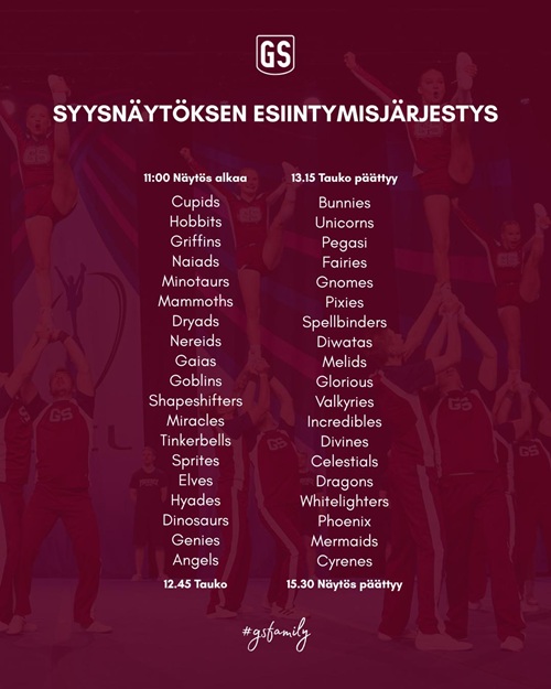 Tervetuloa kokemaan GS-henkeä ja nauttimaan upeasta näytöksestämme Energia Areenalla!